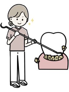 歯茎の下にこびりついた歯石をとり、歯根の荒い表面をなめらかにします。